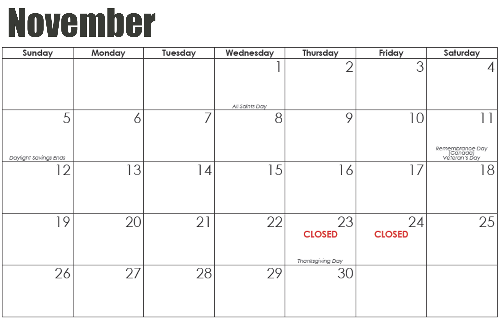For some reason, it seems like the holiday season comes up more quickly every year. And 2017 is no exception! So with the first of the holidays in the US upon us, we have put together our holiday schedule from now until the end of the year. Bear in mind that with a shortened production period in the upcoming month, any orders will need to be placed promptly in the first two weeks of December!